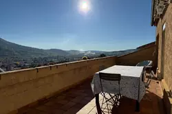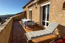 Entrance/hallway with closets, living room of 26.71 m² opening onto a 38.87 m² terrace with a beautiful open view, separate kitchen of 11.82 m², 2 bedrooms measuring 10.48 and 10.51 m², bathroom (bathtub), separate toilet